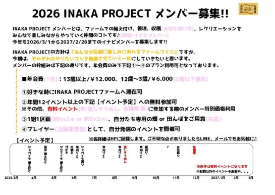 私たちに携わって頂いているすべての方々が、INAKA PROJECTファームへ気軽に楽しみに来れる。そんな場所で、2026年もワクワクする企画を発信していきたいと思います。
